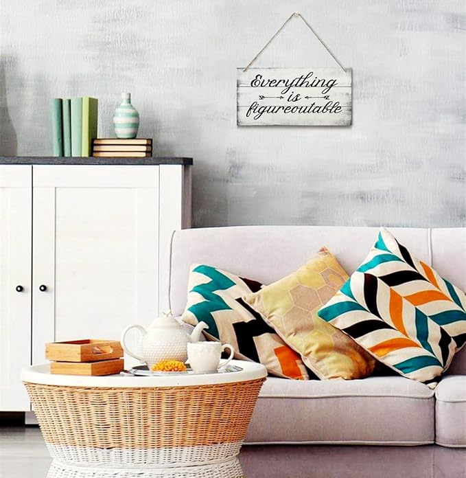 Everything is Figureoutable Decor Sign, Printed Wood Wall Art Sign, Funny Home Signs Decor, Hanging Wood Sign Home Decorative, Rustic Farmhouse Inspirational Wood Sign Decor Wall Art 12x6 in