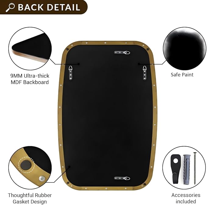 - Premium Quality: Crafted from heavy-duty SUS304 stainless steel, this oval mirror is sturdy, durable, anti-scratch, and rustproof; The no-distortion HD glass provides clear reflections; the MDF backboard ensures safety and strength against humidity