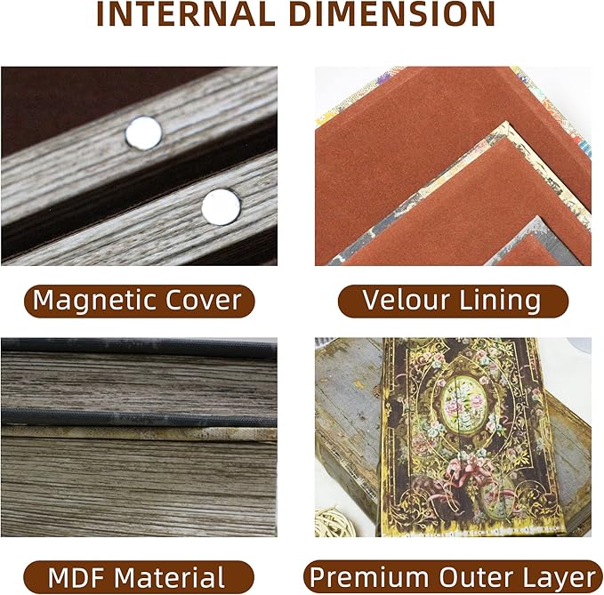 • The inside of this book box has a delicate plush lining and comes in two sizes, ideal for storing items of different sizes, such as jewelry, glasses, photos, letters, Christmas card etc