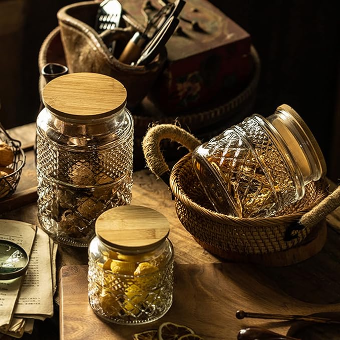 • 【Vintage Decorative Jar】 The storage containers are made of premium unique pattern glass, thick glass coffee bean storage jar is not deformed, not stained, durable and stable placement.