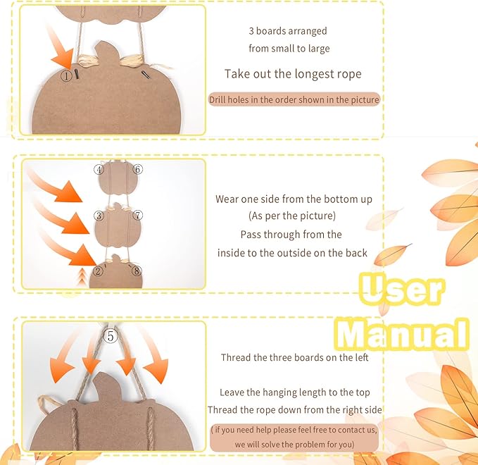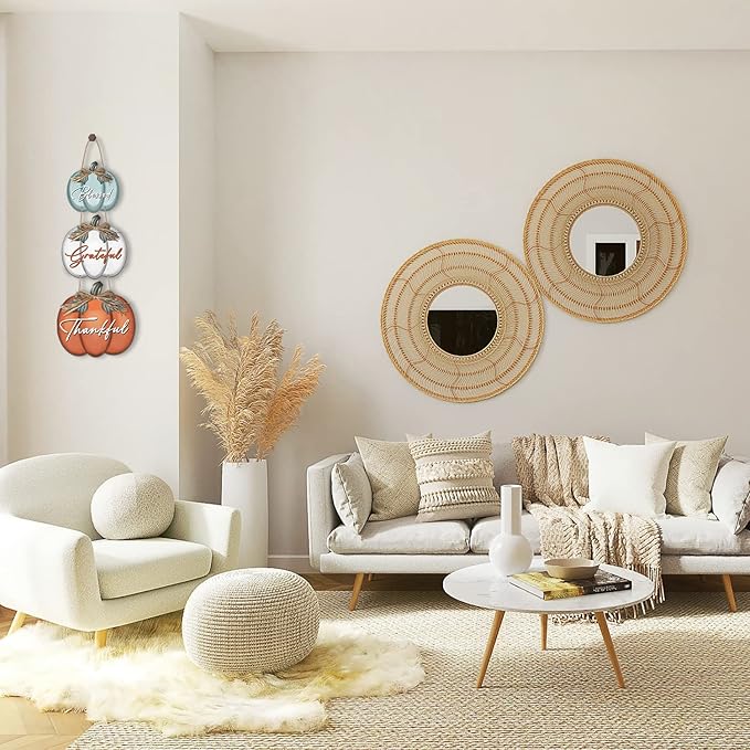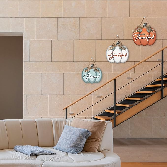 - Package Contents: You will receive 3 pumpkin wall sign with [Grateful Thankful Blessed] written on each, and four ropes that can be hung individually or in combination, and the ropes can also be flexibly adjusted to the right length to decorate your favorite places