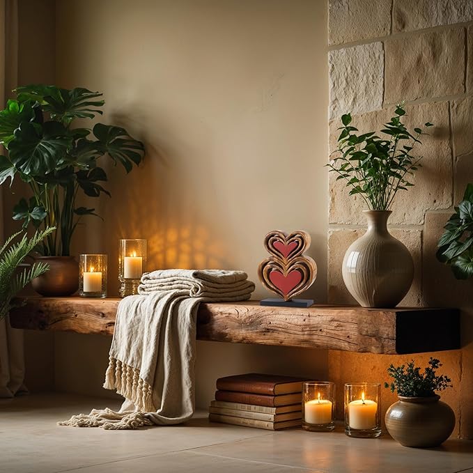 Decozen Gifts for Mom - Wooden Heart Sculpture - Mother's Day Birthday Gifts, Home, Office, Living Room, Shelf, Fireplace, Farmhouse, Tabletop, Boho and Mantle Decor - Mothers Day Decorations