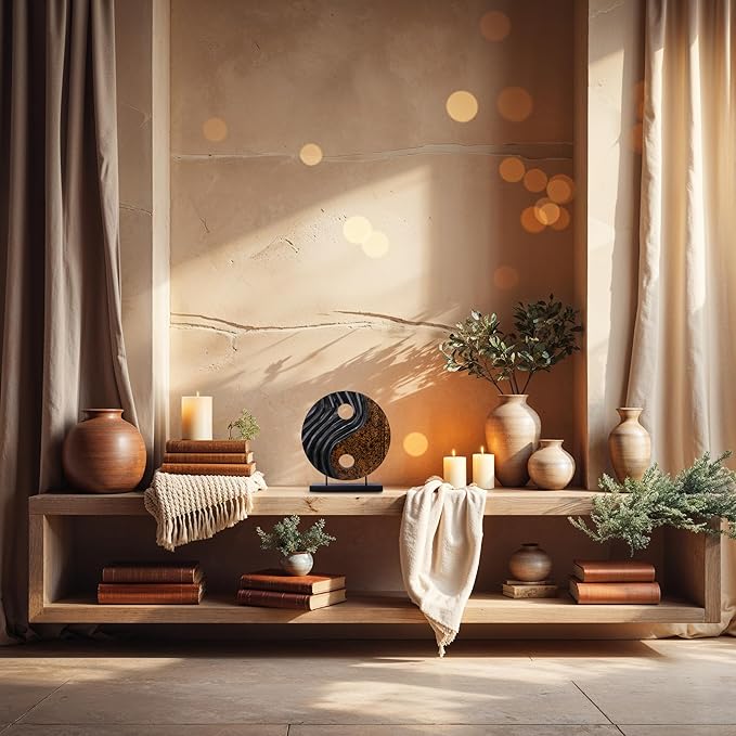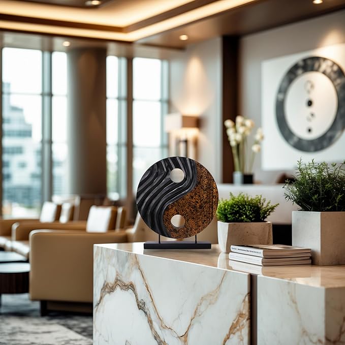 Decozen Handcrafted Solid Wood Yin Yang Sculpture Ideal for Home, Mantel, Fireplace, and Foyer Decor - Valentines Day Gifts