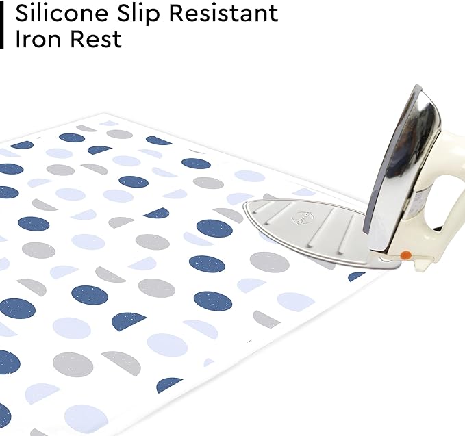 • QUALITY: Pure Cotton Printed fabric laminated with fibre pad for soft and quick ironing. Silicon Mat attached in one corner for keeping the hot iron. Printed fabric is scorch resistant and does not discolour easily . Fibre pad protects Table or Bed from burning as well as allows steam to go through and also holds heat for quick ironing.