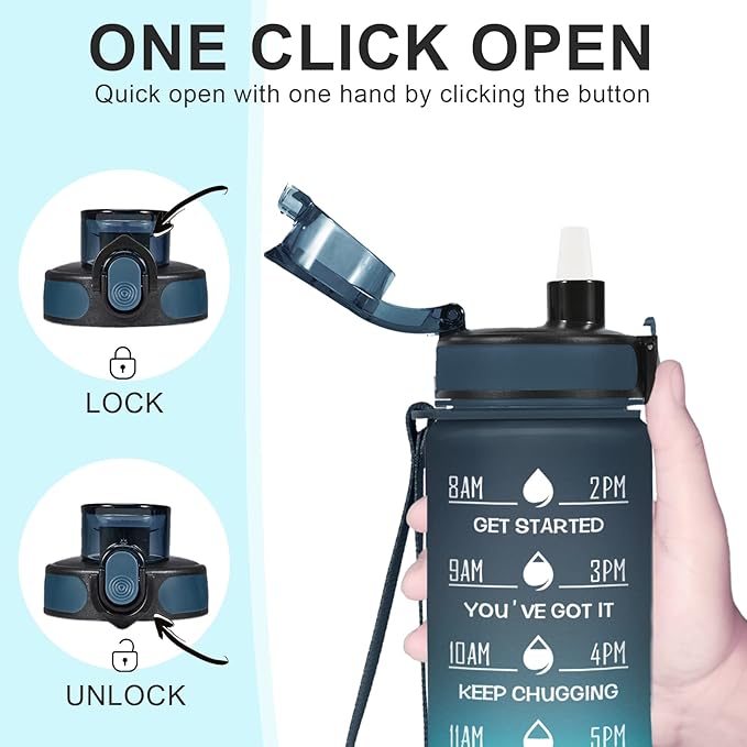 • 【Humanized Design】Water bottles with times to drink can quick open with one hand. The flip-top lid is used a secure lock, making it dust-free and leak-proof. Time water bottle is portable, light, and easy to use.