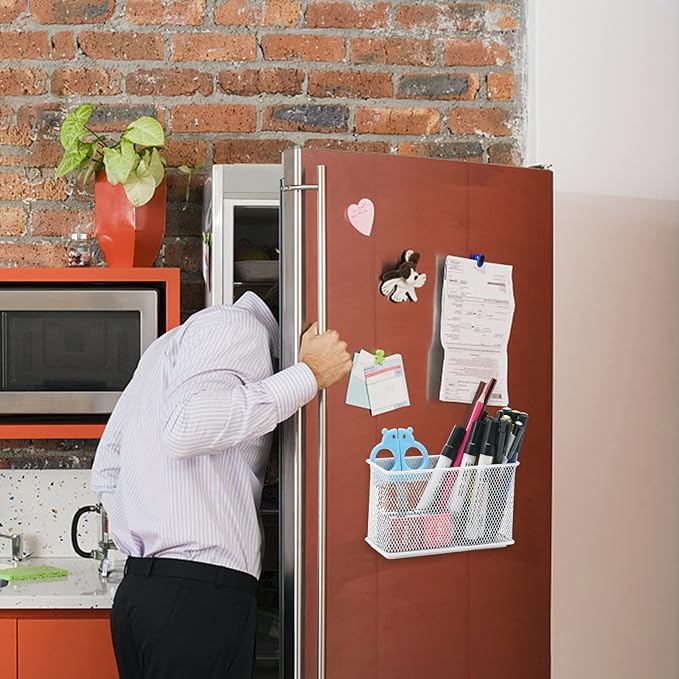 dedoot Magnetic Pencil Holder for refrigerator Storage Magnetic Basket Mesh White Strong Magnetic Pen Holder for Refrigerator,Whiteboard, Locker, Home and Office Organizer, 6.3x2.3x3.6inch
