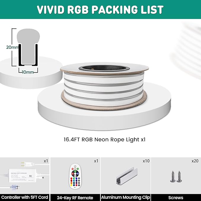 - Remote Sync & Command--Control up to 4 neon ropes with one remote! Effortlessly pair multiple strips for perfectly synchronized colors, effects, and brightnessâideal for large-scale setups. The 24-key RF remote controls 16 static colors, speed, and 4 dynamic modes within a range of 66 ft. NOTE: This is NOT color chasing Light.