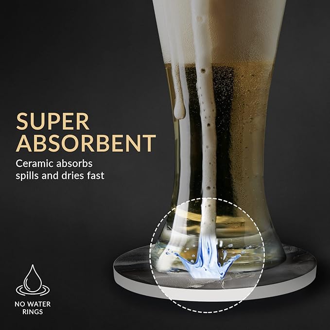 Emerson Coasters for Drinks Absorbent Set of 6 with Holder – Marble Style Coasters – Coasters for Drinks – Drink Coasters for Coffee Table – 100% Ceramic Stone Non Slip – Heavy Duty (Ripple)