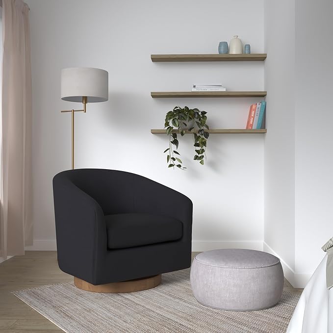 • 360-Degree Swivel - Designed with a sturdy swivel base and refined wood accent details, this chair allows for smooth and effortless rotation.