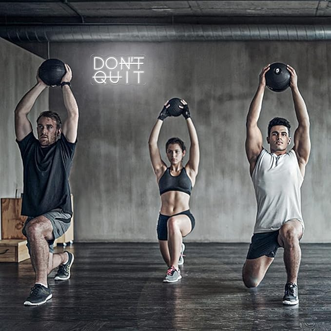 - Style & Material: The sign of Don't Quit (it also means to DO IT, don't give up)neon light is an exquisite artistic neon light decor sign. The LED neon light's combination of white is novel. The Neon Signs are made of Acrylic LED, Silicon Strips, and ABS Material, with No risk of glass breakage or leakage of hazardous materials