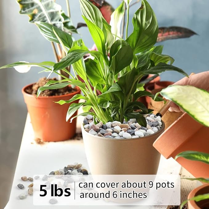 • 【Gravel Pebbles Size】These stones are packaged in a 5 pounds bag. The size is about 1/5 inch, it is perfect for succulent and cactus plants, as well as any vase or terrarium