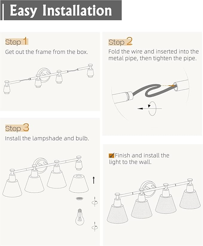 • 【Bulb Requirements】Support any E26 base bulbs ( Max 60W/each, bulbs are not included). This bathroom vanity light is also designed to be dimmable when used with a dimmable bulb and compatible dimmer switch.