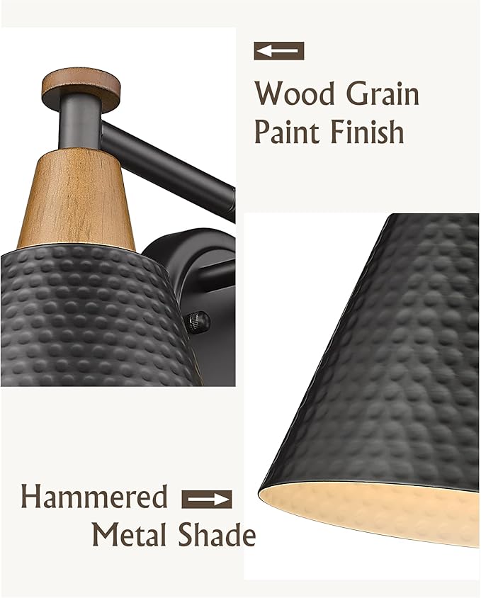 • 【Well Made】This black bathroom vanity lights are handcrafted with hammered metal shade, simple but appealing to the eye, complementing any indoor decor.