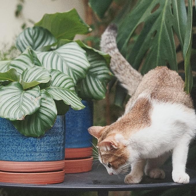 • 8 Inch pots for plants indoor: 8" Diameter x 7" H, blue reactive glaze & terracotta red
