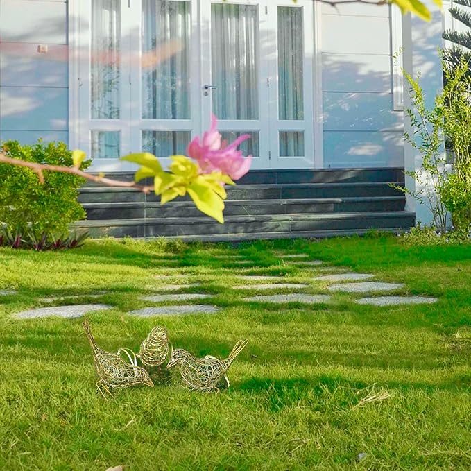• [Luxury Metallic Accent] Handcrafted with gleaming gold-finish iron wires, these contemporary bird sculptures add refined elegance to modern farmhouse or glam interiors.