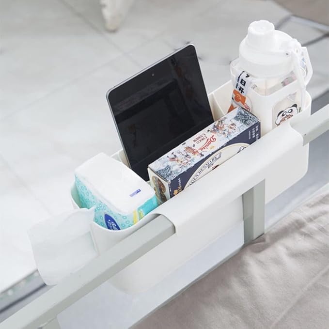 • Can be hang on bed rails or dividers less than 1.1 inches wide. Multi purpose bedside caddy for dorm bed helps to make your bed neat and orderly