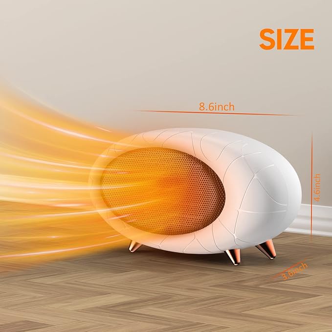 • 【PORTABLE DESK HEATER】 The dimensions is 8.6 x 4.6 x 3.6 in,1.22 lb,this personal heater takes up little space and is easy to carry around.Perfectly fits for indoor use such as home,bedroom,desk,office,etc.