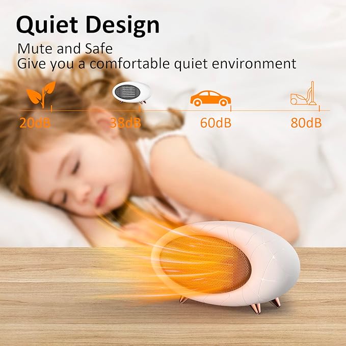 • 【QUIET DESIGN】The small heater is lower than 45 dB level,quiet enough for most people to use in a bedroom while sleeping,and it’s also extremely suitable for warming the room while reading,working,studying or watching TV,it won’t being disturbed