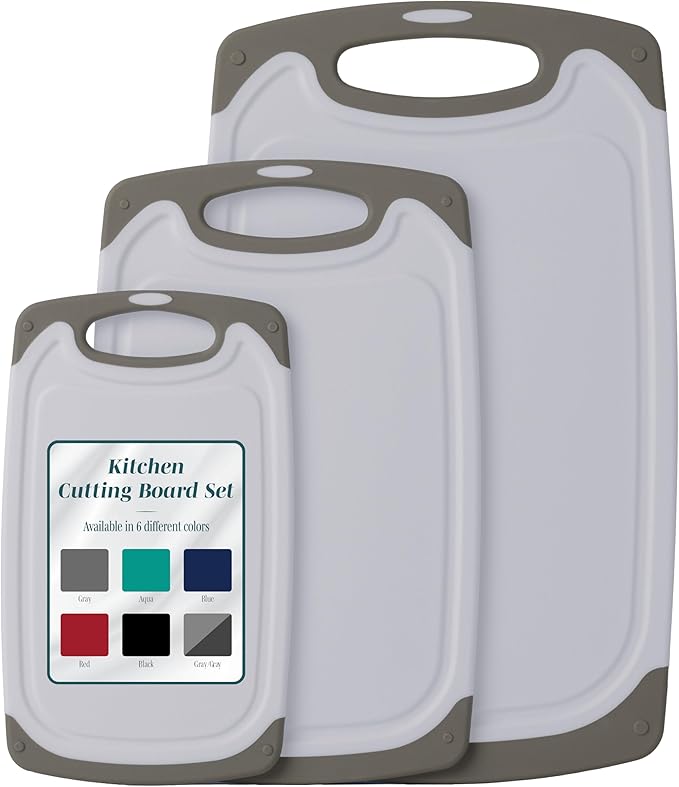 Cutting Boards for Kitchen - BPA-Free Chopping Board - Different Sizes & Non Slip Handles - Reversible, Large Cutting Board Set - Unique Gifts for Cooks Who Have Everything - 3-Pack Gray/Gray