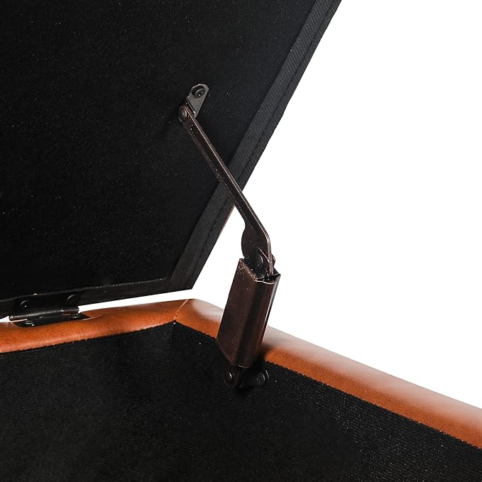 • 【SAFETY DESIGN】Constructed with a sturdy corner-blocked frame, padded hinged lid stays open for safe access to storage space inside.