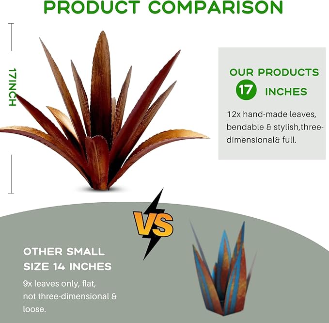 • 【Eternal metal agave】This is a rust-style metallic agave, made from metal and painted with blue high lights in contrast with its rusty steel style finish creates a very unique juxtaposition in the spring you will find a variety of beautiful and lush foliage unique to the Golden State.