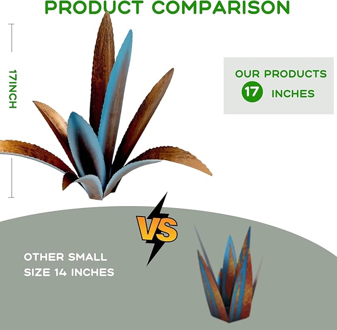 • 【Eternal metal agave】This is a rust-style metallic agave, made from metal and painted with blue high lights in contrast with its rusty steel style finish creates a very unique juxtaposition in the spring you will find a variety of beautiful and lush foliage unique to the Golden State.