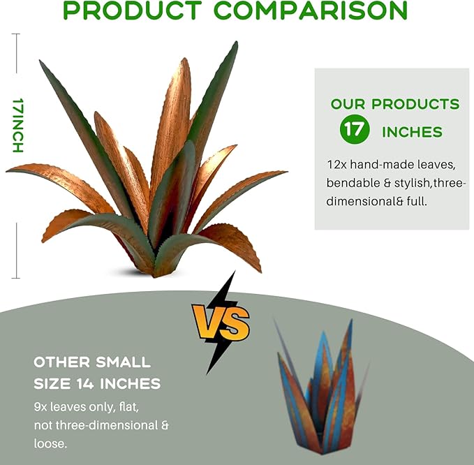 • 【Eternal metal agave】This is a rust-style metallic agave, made from metal and painted with blue high lights in contrast with its rusty steel style finish creates a very unique juxtaposition in the spring you will find a variety of beautiful and lush foliage unique to the Golden State.