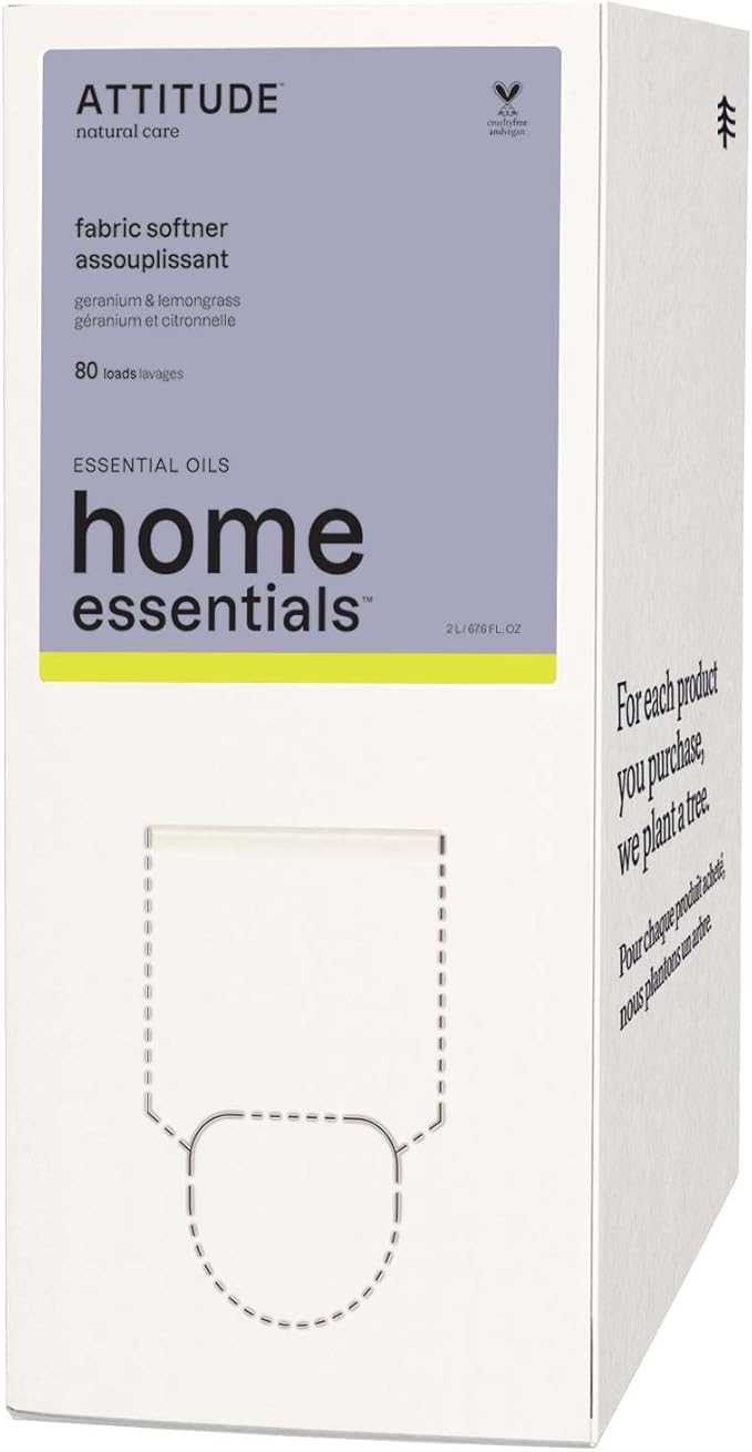 ATTITUDE Fabric Softener with Essential Oils, Vegan, Plant and Mineral-Based Ingredients, HE, Bulk Refill, 80 Loads, Geranium and Lemongrass, 67.6 Fl Oz