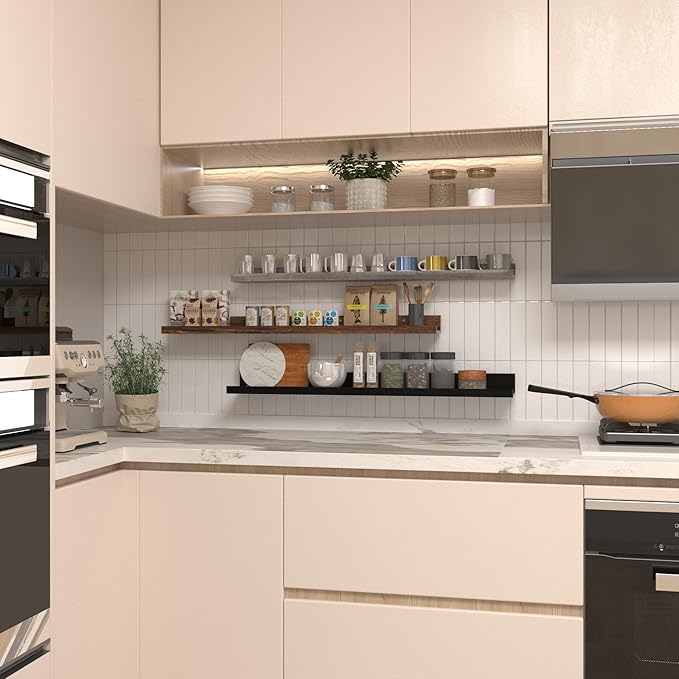 - Multi-functional storage: This large wall mounted shelving unit provides ample storage space to keep your home organized and tidy. To meet your different storage needs in different places, this floating shelf set offers multiple storage spaces in different sizes.