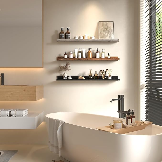- Nice decoration: This wooden floating shelf unit features a wooden structure and 3 colors finish, making it a perfect example of minimalist design. You can use these wood floating shelves to display picture frames, small plants, or decorations, and whether itâs a modern or vintage space, this wall mounted wood shelf will add a touch of elegance and sophistication to your home.