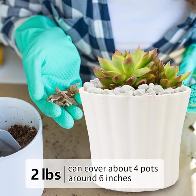 • 【Gravel Pebbles Size】These stones are packaged in a 2 pounds bag. The size is about 1/5 inch, it is perfect for succulent and cactus plants, as well as any vase or terrarium