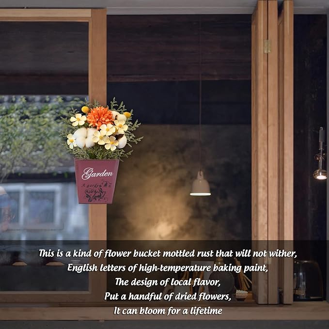 • [Style]The small iron bucket in candy color is very beautiful.Hand-painted 3-color (red, green and white) flower barrel with rural and idyllic style.It is recommended to buy with multi-color matching, which is more brilliant.