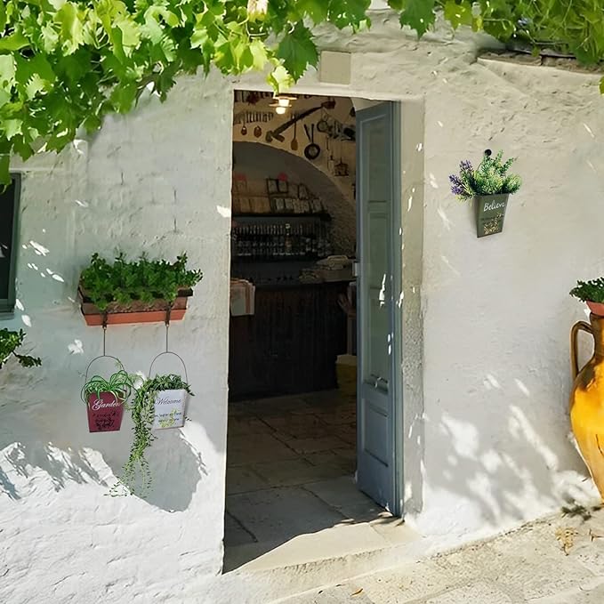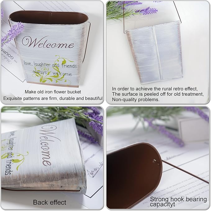 • [Handle]Every tin flowerpot has firm handle for easy hanging, can be hung on the wall above the wall clock, near the pictures, wooden plaque, windowsill or even mirror.