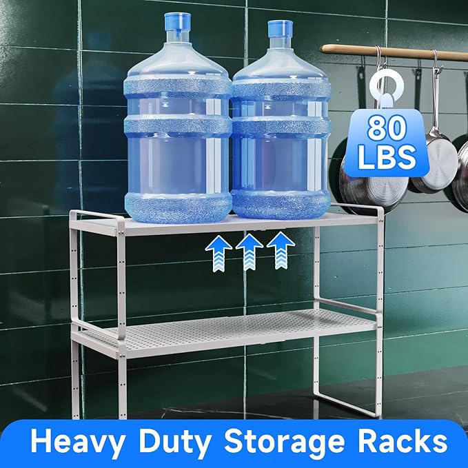 • Heavy-Duty Capacity: This cabinet shelf organizer is built to last, with a durable and sturdy construction that can support up to 80 lbs of weight, making it perfect for storing even your heaviest kitchen items