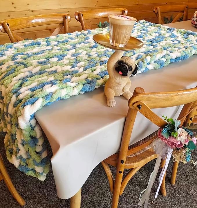 DDL&HEXI Chunky Chenille Blanket 100% Hand Knit with Jumbo Chenille Yarn (50"x60") Super Soft Large Throw Bed Blanket for Couch, Sofa, Home Decor - Machine Washable (01)