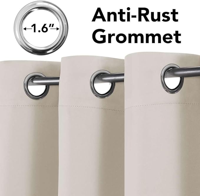 • Natural Blackout: Products passed GLOBAL RECYCLED STANDARD certificate.These magic thermal insulated grommet curtain panels can blocks out 50% sun light and prevent 100% UV ray, authoritative lab test that the curtains are vinyl and PVC free, breathable and airy to your room