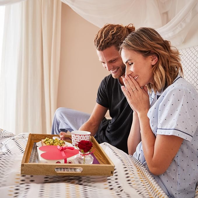 - MULTIFUCTIONAL LARGE WOOD TRAY: This decorative large serving tray is perfect for serving breakfast, lunch, dinner snacks appetizers, or any meal on your bed, dining table, coffee table, or anywhere you want! Ideal for kitchen, commercial use, family events, parties, offices, and more!