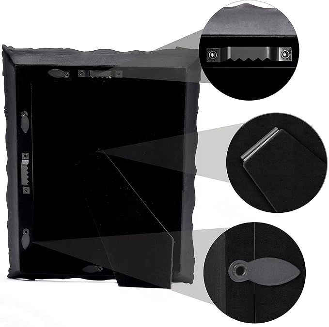 - Easy to Display: The back of this 5x7 black ornate frame is a soft velvet back plate equipped with a easel and two-way serrated hook, which can be displayed on tabletop or hang on the wall in vertically or horizontally.