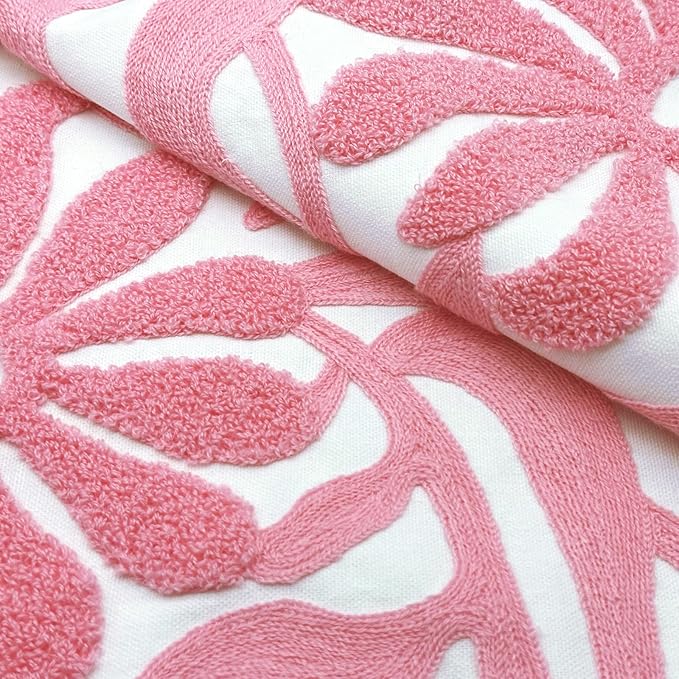 Alysheer Farmhouse Floral Leaves Embroidered Decorative Throw Pillow Cover 18x18 inches, Boho Tufted Flowers Embroidery Pattern Chic Cotton Cushion Case for Couch Bed Sofa Living Room(Light Pink)