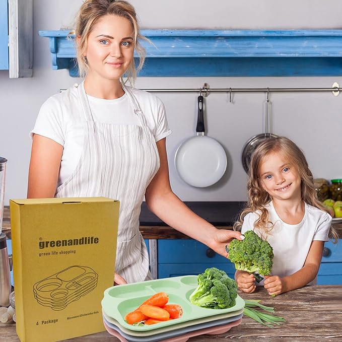 - FOOD SAFE and HEALTHY: Greenandlife divided plate sets are made of wheat straw and food grade PP material, non-toxic and BPA free. Safe and healthy for everyone to use, especially for kids and children. In addition, they are recyclable and no pollution to the environment