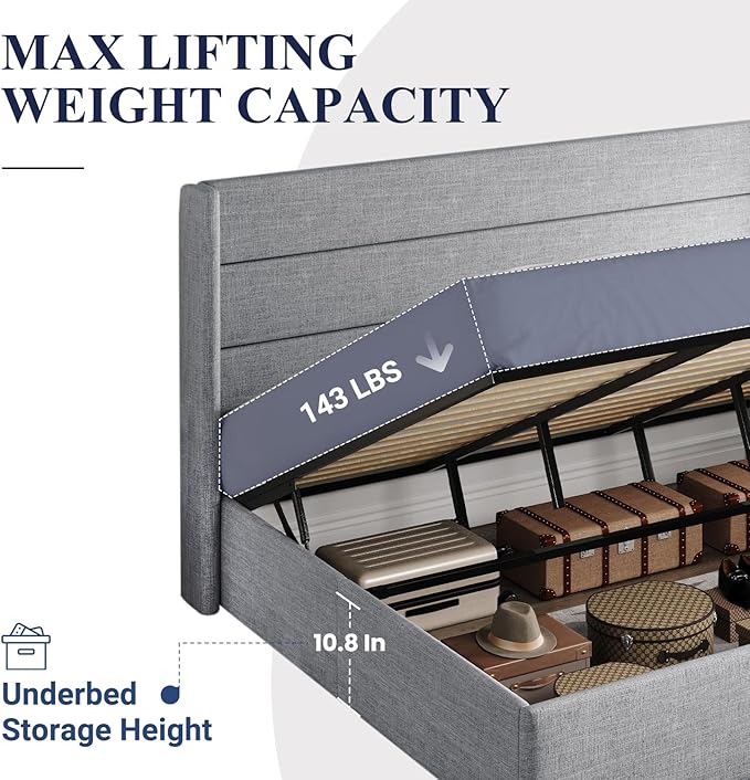 • Space-Saving Storage: With its lifting up storage feature, this bed frame provides ample space to store extra bedding, clothing, shoes, and other items, especially helpful for smaller bedrooms or apartments where storage space is limited