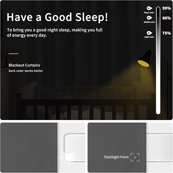 • Multiple Functions: Our curtains can block out 80%-95% sunlight and UV ray (Darker colors work better), insulate against summer heat and winter chill to balance your room temperature, cut down energy bills. Reduce outside noise, privacy protection, create a good working and sleeping environment for you.