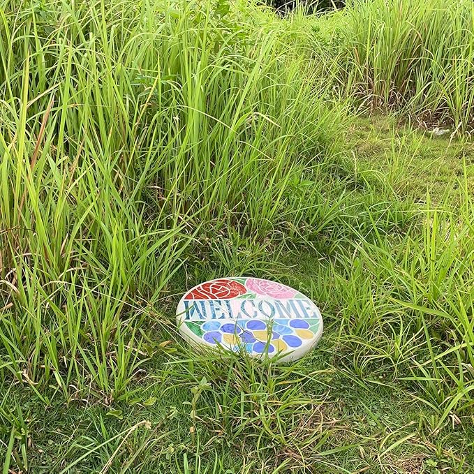 • ATTRACTIVE: This tile has an amazing design. There are welcome sign and flowers on the front side, You will receive many compliments if you put it in your garden.