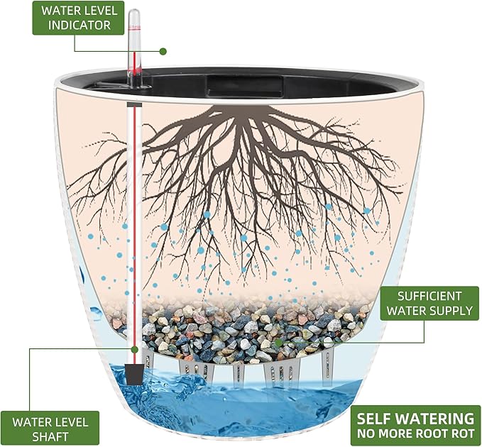 • Self Watering System: The integrated water reservoir keeps soil moist and aerated for optimal plant growth.