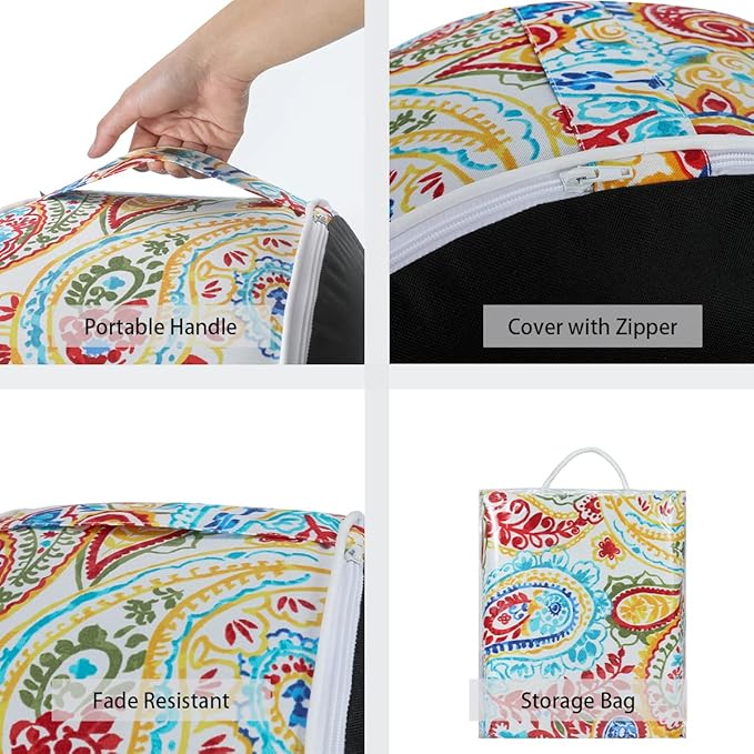 - 【Stylish Patterns】-Unique modern retro style designed by our designer which can decorated your indoor home. The cover of patio ottoman features 500HRS UV protection to resist fading, retained its color and keep the painting vibrant after long time using. The hidden invisible zipper closure works smoothly, easy to insert and remove the PVC inner.