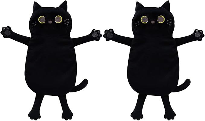 2PCS Microwave Heating Pads for Cramps Pain Relief, 17 * 9" Moist Microwavable Period Menstrual Heat Packs for Cramps, Back, Neck, Shoulder, Abdomen, Black Cat
