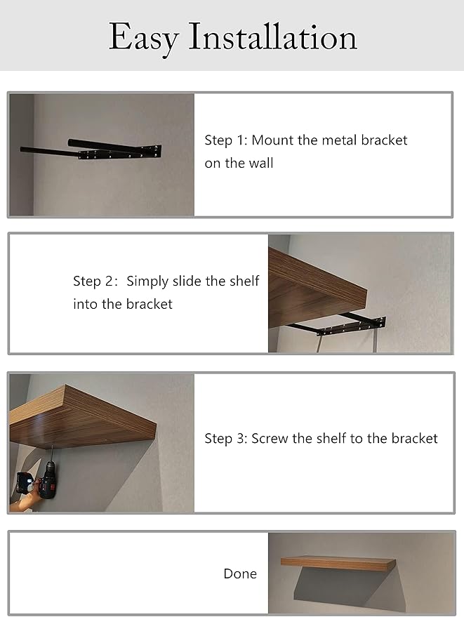 - ðð°ðððððððð ðīðððð ðĐððððððð: The strong metal brackets attach the shelves to the wall firmly and are hidden behind the shelves. The single integrated bracket of wall shelves will make installation easier. Installation instructions and standard mounting hardware is included for easy assembly.