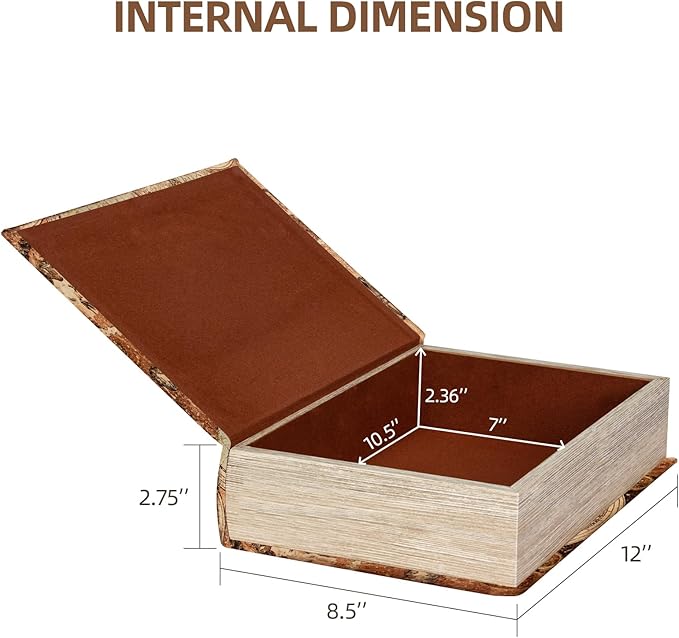 • Large Hidden Storage Compartment (12” x 8.5” x 2.75”) Spacious interior (10.5” x 7” x 2.36”) securely stores jewelry, letters, keys, or small valuables—ideal for discreet organization or creative home accents.