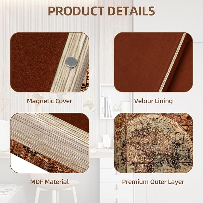 • Luxurious Design with Magnetic Closure Crafted from durable MDF and lined with soft velvet, this decorative storage box features a seamless magnetic closure—no keys needed for easy access.