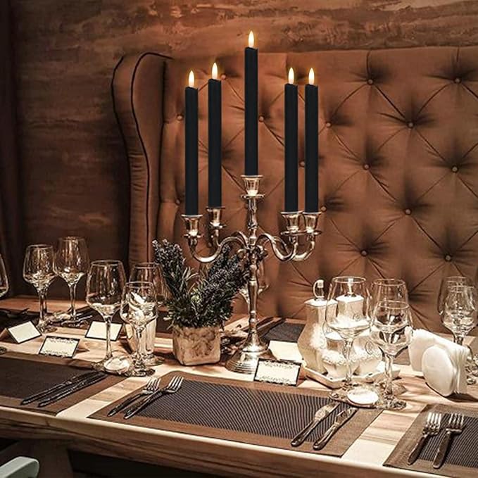 • EXCELLENT DESIGN: You don't need to use a candlestick to stand (you can also use it with a candlestick), These taper candles are made from real wax and 3D Wick realistic flicker design, feels and looks like a real wax taper candle flame. Warm light glow creates a romantic atmosphere when used as a dinner, party, wedding, birthday, or Christmas home decoration